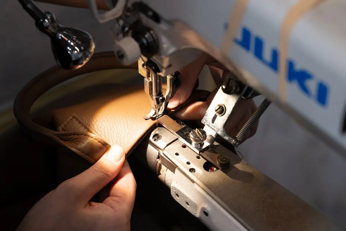AtelierK.I.で製作させていただいております。経験豊富な職人が革の裁断から縫い上げまで一貫して担当し、細やかな手仕事で高品質な仕上がりを実現しています。