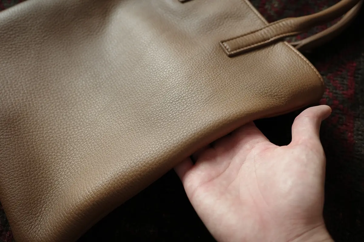 ナチュラルなシボ感で、傷が目立ちにくい国産牛革を使用しています。柔らかく、厚みがあり、長く使えるので経年変化が楽しめます。