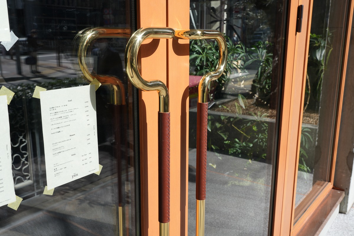 空間を訪れる方々が最初に触れる部分だからこそ、握った時の感触、手のひらに馴染む温かみを最重要視しました。金属の冷たさとは一味違う、革ならではの上質なホスピタリティを演出します。