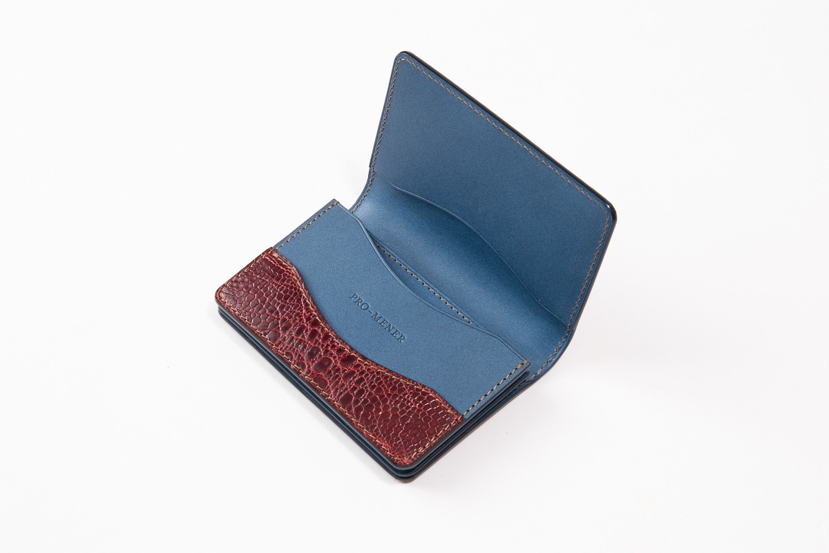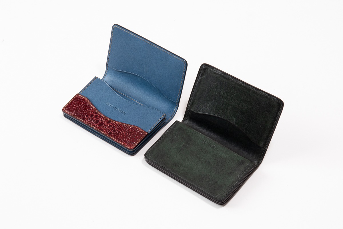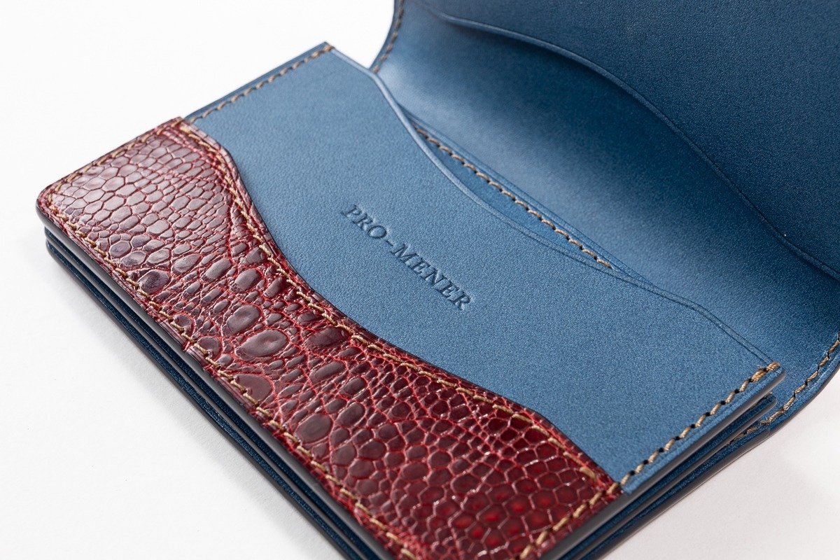 ジャクルシーの野性味と、ブルーグレーの冷静沈着な佇まい。そして、磨き上げられたコバの輝き。これらが一体となった名刺入れが、日々の仕事に静かに寄り添い、使うほどに手に馴染みながら、持ち主様の歩みを共に刻んでいく「確かな相棒」となることを、心より願っております。