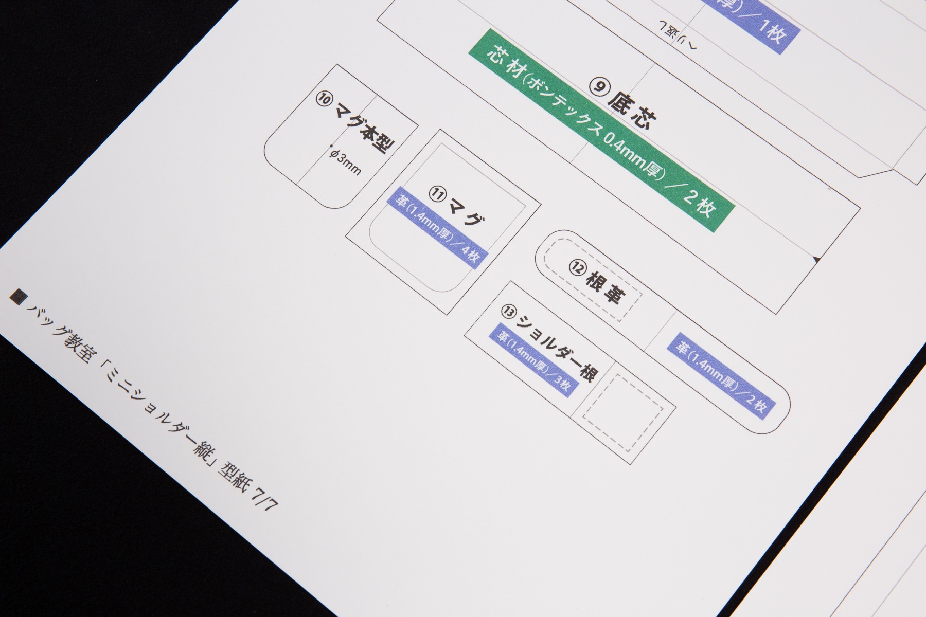 革の厚みについて型紙では、一般的に製作する上での平均値を記載しております。
